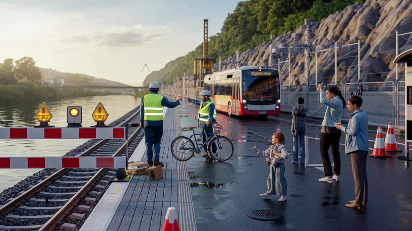 Technisch gesehen ist Pallien ein heikler Abschnitt: steiler Hang, sensible Geologie, enge Trasse zwischen Fels und Wasser. Das bedeutet Baustellen, die sich nicht einfach „abbauen lassen“, sondern Taktarbeit mit Abhängigkeiten: Hang sichern, Drainagen setzen, Schotterbett prüfen, dann Kabel, dann Signale. Alles braucht Fenster im Fahrplan, Lieferketten, Abnahmen. Ein Zahnrad greift ins nächste – bis ein Teil fehlt.