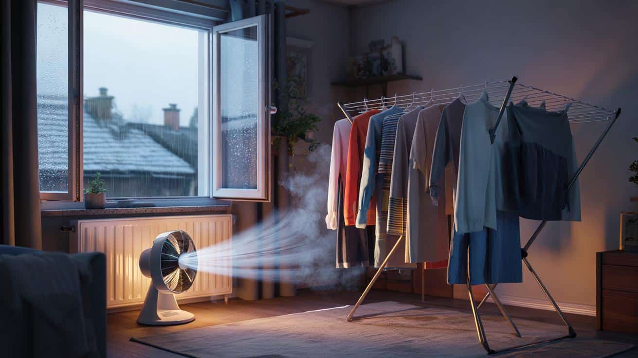 Das fühlt sich im ersten Moment vielleicht so an, als „heizt du zum Fenster raus“. Der Punkt ist: Du lüftest kurz und kräftig, nicht stundenlang. Die Wärme der Wände und Möbel bleibt, die feuchte Luft verschwindet. So trocknet die Wäsche schneller, ohne dass du die komplette Heizsaison durchbrennst. Diese einfache Umlenkung von Luft macht oft mehr aus als eine zusätzliche Stunde auf Stufe 4.