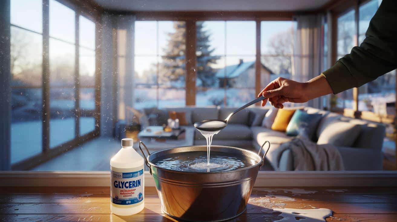 The method is disarmingly simple. Fill a bucket with warm water, not too hot, and add your usual glass cleaner or a small splash of dish soap. Then, the key gesture: one tablespoon of liquid glycerin, no more. Stir gently so everything mixes without creating a mountain of foam.