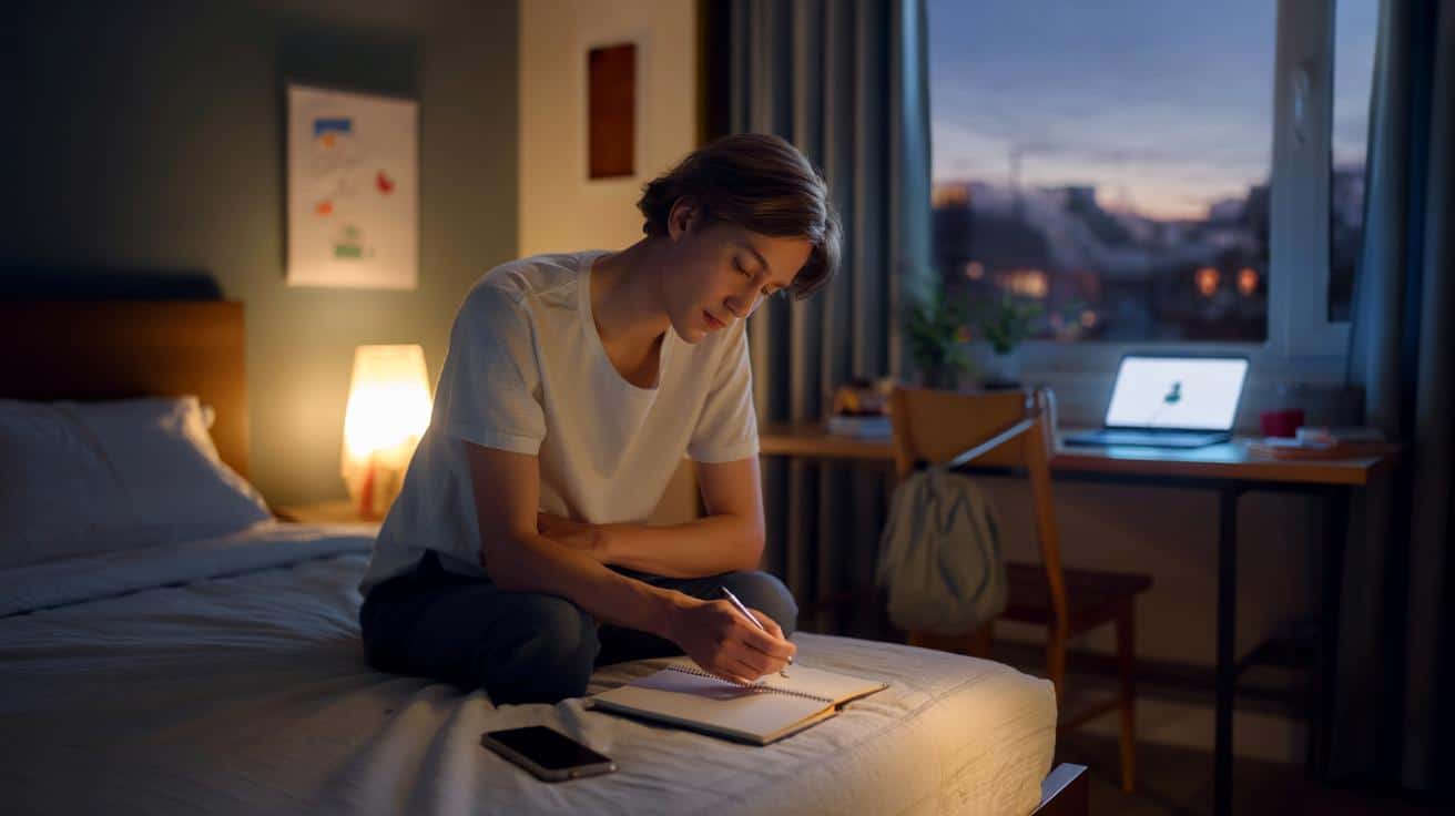 Die Technik ist überraschend simpel: Setz dich 10 Minuten vor dem Schlafengehen hin und schreib alles auf, was im Kopf herumfliegt. Nicht sortiert, nicht schön, nicht als Tagebuch. Eher wie eine gedankliche Ausparkzone.