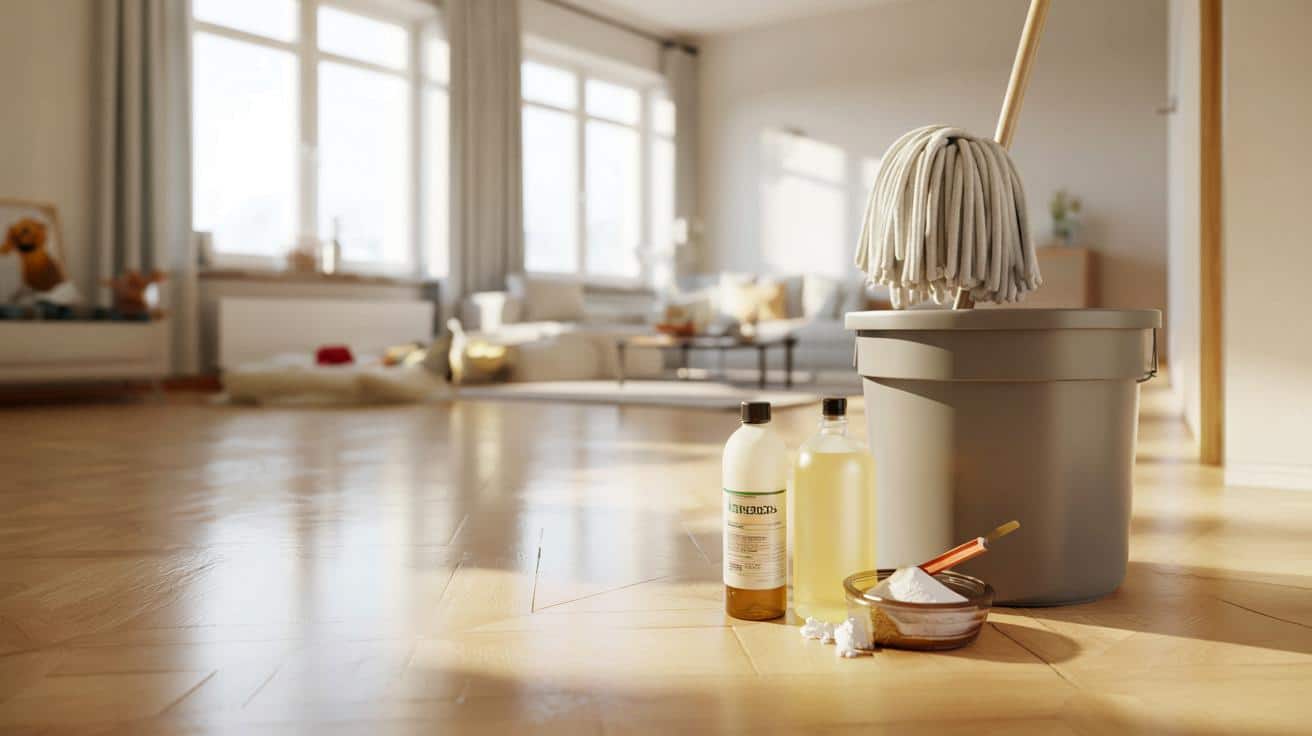 Picture this. A small apartment in Berlin, light oak parquet, three kids, a dog, and a white mop leaning in the corner. The owner, exhausted, complains to a cleaning pro that the floor never looks clean, no matter how often she mops. She has tried “special parquet shampoo”, “premium shine booster” – the works.