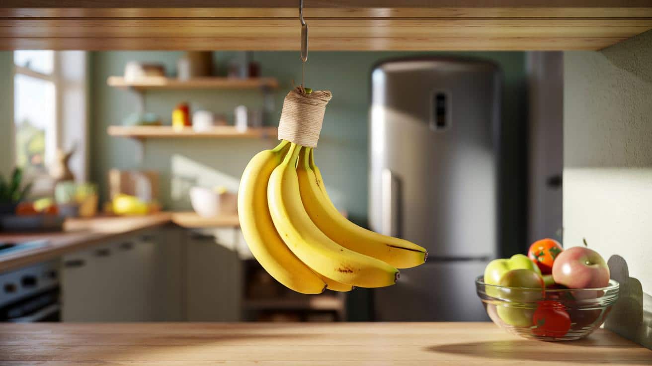 Stiele dicht umwickeln, bananen aufhängen, fern von äpfeln lagern – drei kleine Schritte, spürbar mehr Gelb.