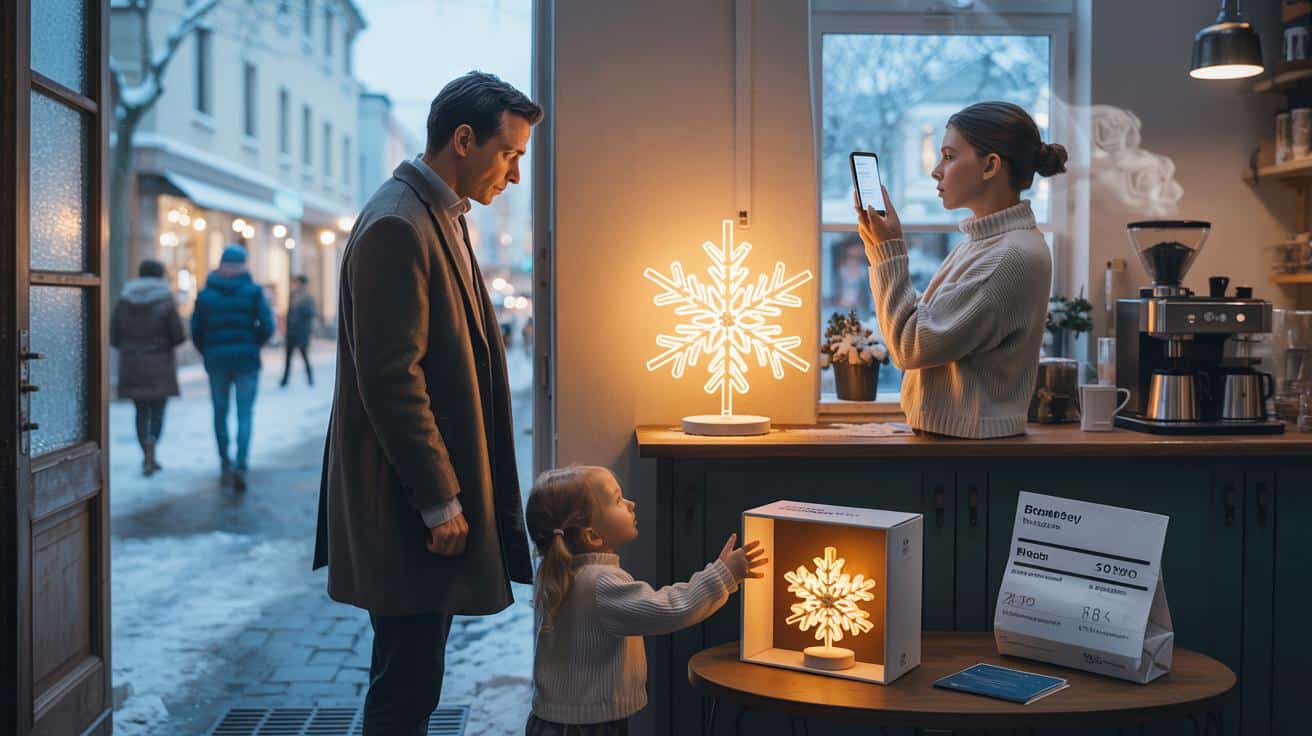 Im Tchibo-Shop steht ein Mann vor dem Display, die Jacke noch offen, der Atem nach draußen kalt, nach drinnen Kaffee. Neben ihm hält eine Frau ihr Handy hoch und zeigt die Bewertungen, als hinge davon ab, ob ihr Winter gelingt. Ein Kind greift nach der Verpackung mit dem Schneekristall, der in gedämpftem Weiß verspricht, ein Zimmer wärmer zu machen, ohne zu heizen. Hinter ihnen plingt ein Push: „Energie sparen – aber Deko kaufen?“ Und der Blick kippt von Neugier zu Rechtfertigung in drei Sekunden. Die Kasse piept. Ein Blick, ein Kommentar, ein Augenrollen. Dann knistert die Luft. Und plötzlich ist da Krach.