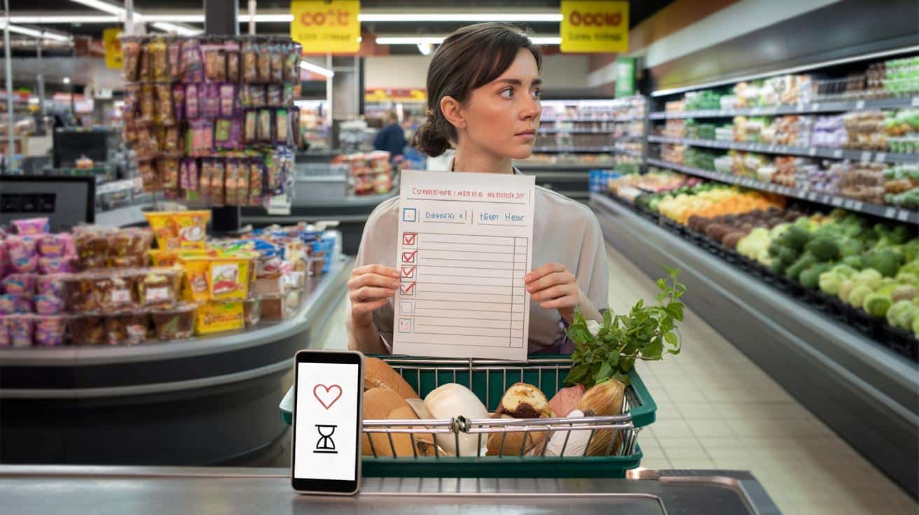 | Timing und Werkzeuge | Satt einkaufen, kleiner Korb, Bar/Debit, 24h-Delay online | Reduziert Reize und Entscheidungsmüdigkeit |