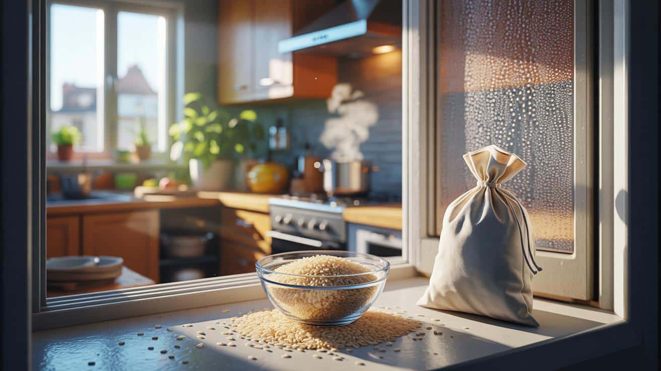 Wir kennen diesen Moment, wenn das Fenster morgens wie ein Aquarium aussieht und man sich fragt, ob das alles noch gesund ist. Genau da spielt Reis seine ruhige Stärke aus: Er nimmt den ersten Schwall Feuchte ab, bevor er an der kalten Fläche landet.