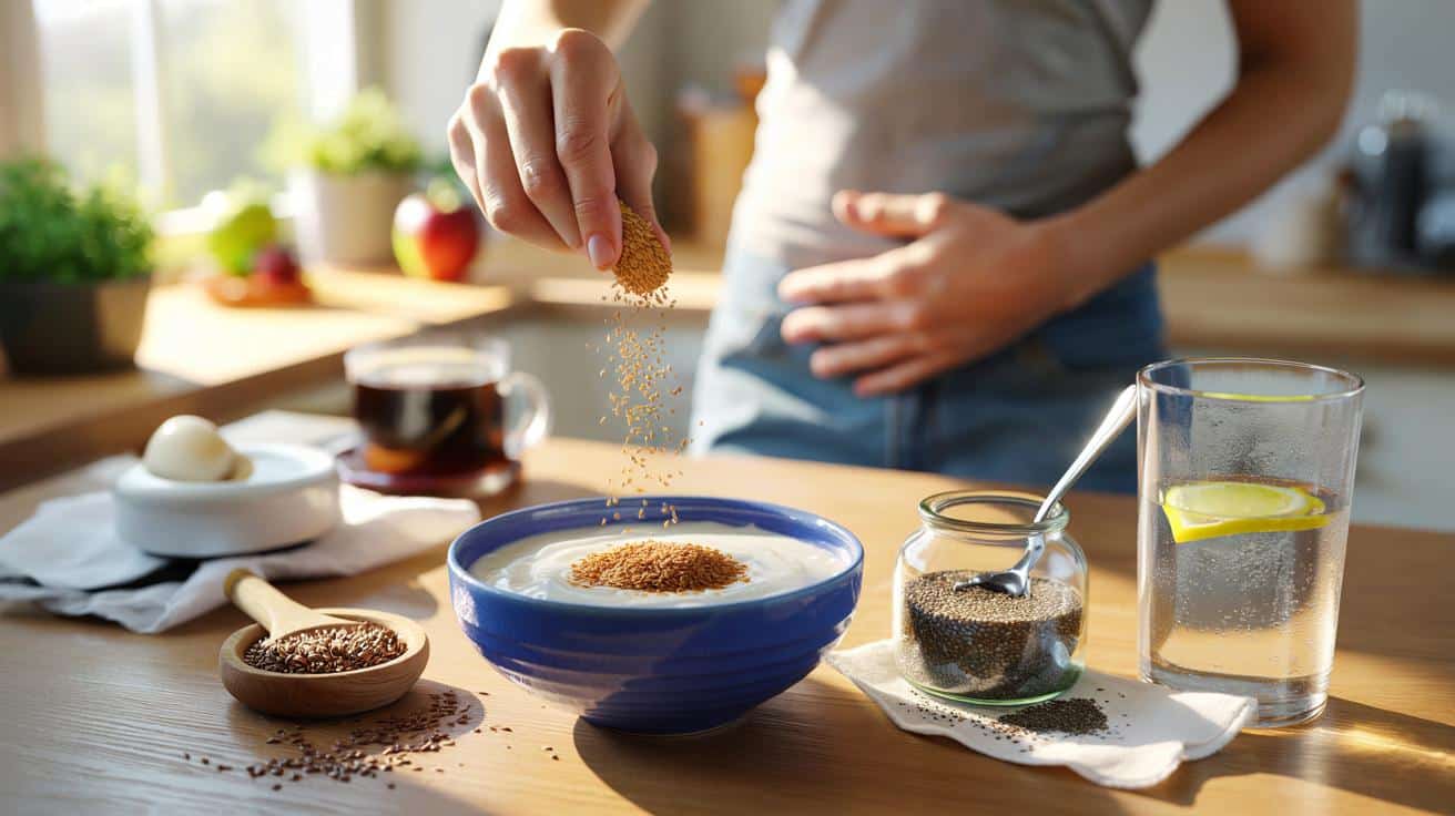 Die Methode, die Ärztinnen mögen: Leinsamen frisch schroten, dann in Joghurt oder Porridge rühren und direkt essen, dazu 300–400 ml Wasser. Chia-Samen vorher in Wasser oder Milch einweichen, 10–20 Minuten, bis ein weiches Gel entsteht. Mengen, die sich bewähren: 1–2 EL am Tag. Das wirkt sanft und planbar.