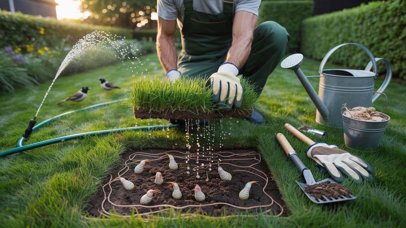 Wer Nematoden nutzt, blockt am besten einen 14-Tage-Korridor. Vorlauf: Schlauch prüfen, Regenzeiten im Blick behalten, Mähhöhe anheben. Tag 1: Anfeuchten, abends ausbringen. Tage 2–14: Feuchte halten, Fußverkehr reduzieren, nicht vertikutieren. Danach Testfeld öffnen und zählen. Fällt der Wert deutlich, schließt eine dünne Kompostgabe und Nachsaat den Kreis.