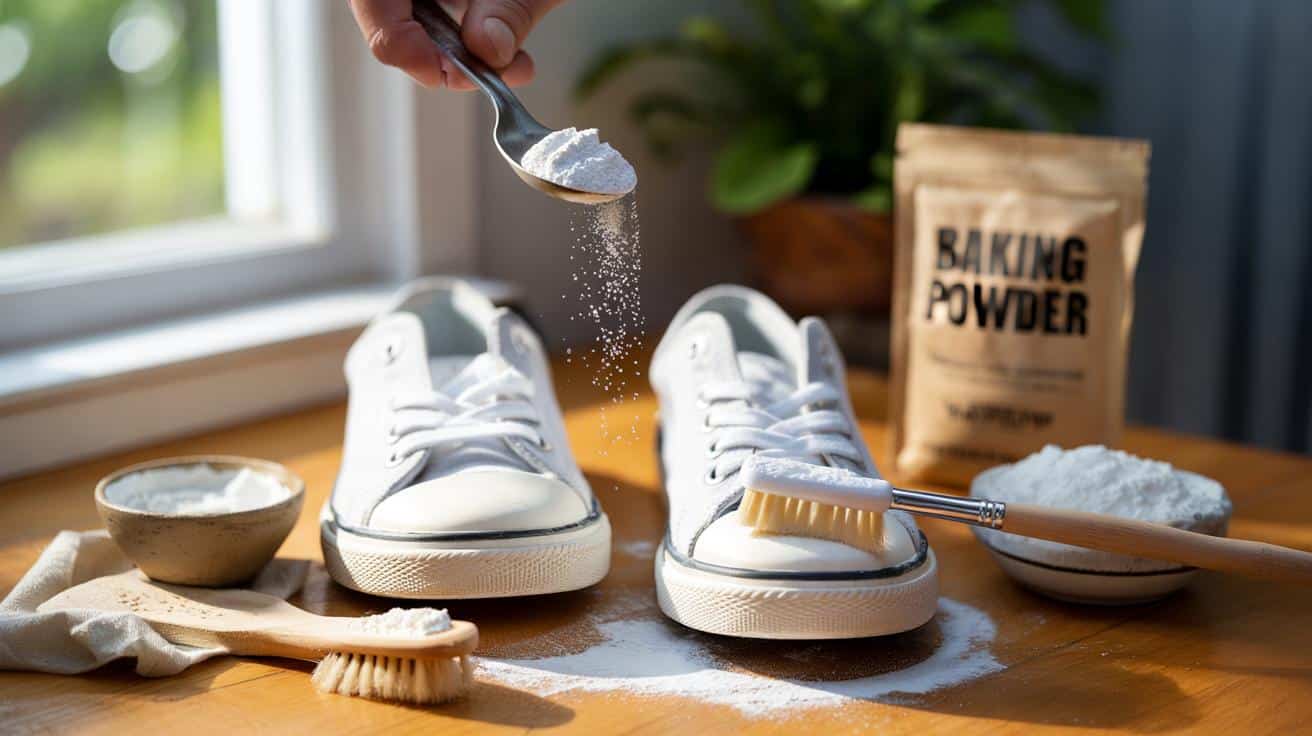 Weiße Sneaker, die plötzlich müffeln und einen grauen Rand an der Sohle zeigen. Keine Lust auf scharfe Reiniger, Duftsprays oder Rätselrezepte aus dem Netz. Ein Löffel Backpulver aus der Küche – und die Schuhe atmen wieder.