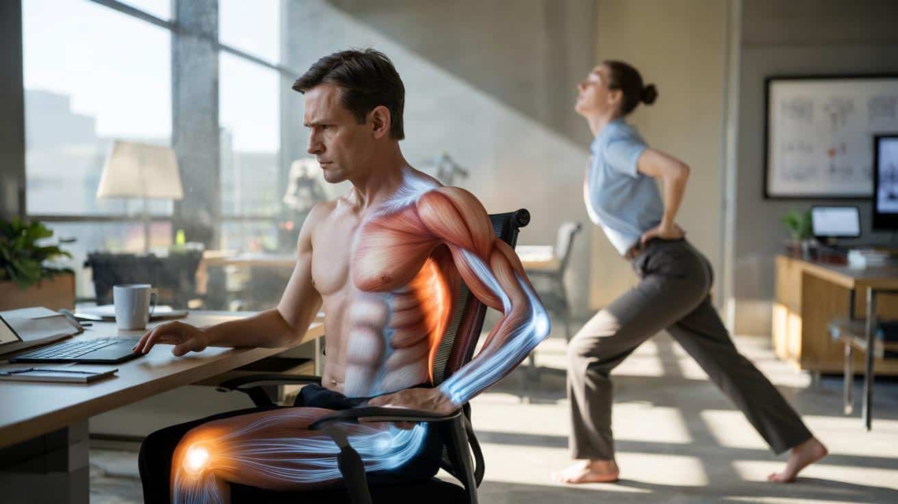 Warum das so wirkt, ist schnell erklärt. Muskeln sind wie Gummis mit Gedächtnis: Wer sie ständig in einer Position lagert, „programmiert“ Länge und Spannung neu. Hüftbeuger, die immer im Winkel bleiben, verlieren Spiel; Gesäßmuskeln, die selten feuern, verlieren Ansteuerung. In der Brust verringert sich die Dehnfähigkeit, der obere Rücken kompensiert mit Dauerstreckung, was ihn müde macht. *Mit weniger Durchblutung und weniger Wechsel steigt die Reibung im System, und Reibung wird zu Reiz.* Der Rest ist Mathematik aus kleinen Gewohnheiten und großen Folgen.