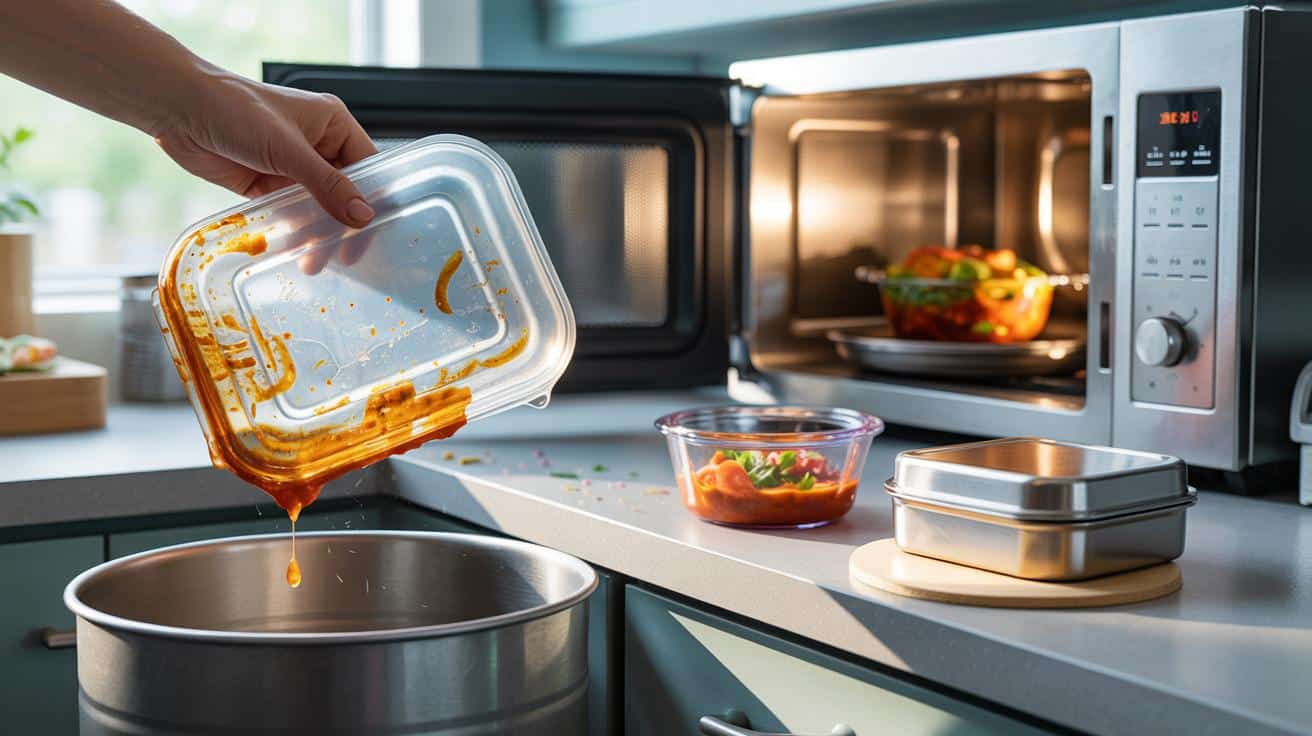 Fettreiche Speisen wie Bolognese, Curry, Käseauflauf niemals heiß in alte Kunststoffboxen füllen. Erst abkühlen, dann umfüllen – oder direkt Glas nehmen.