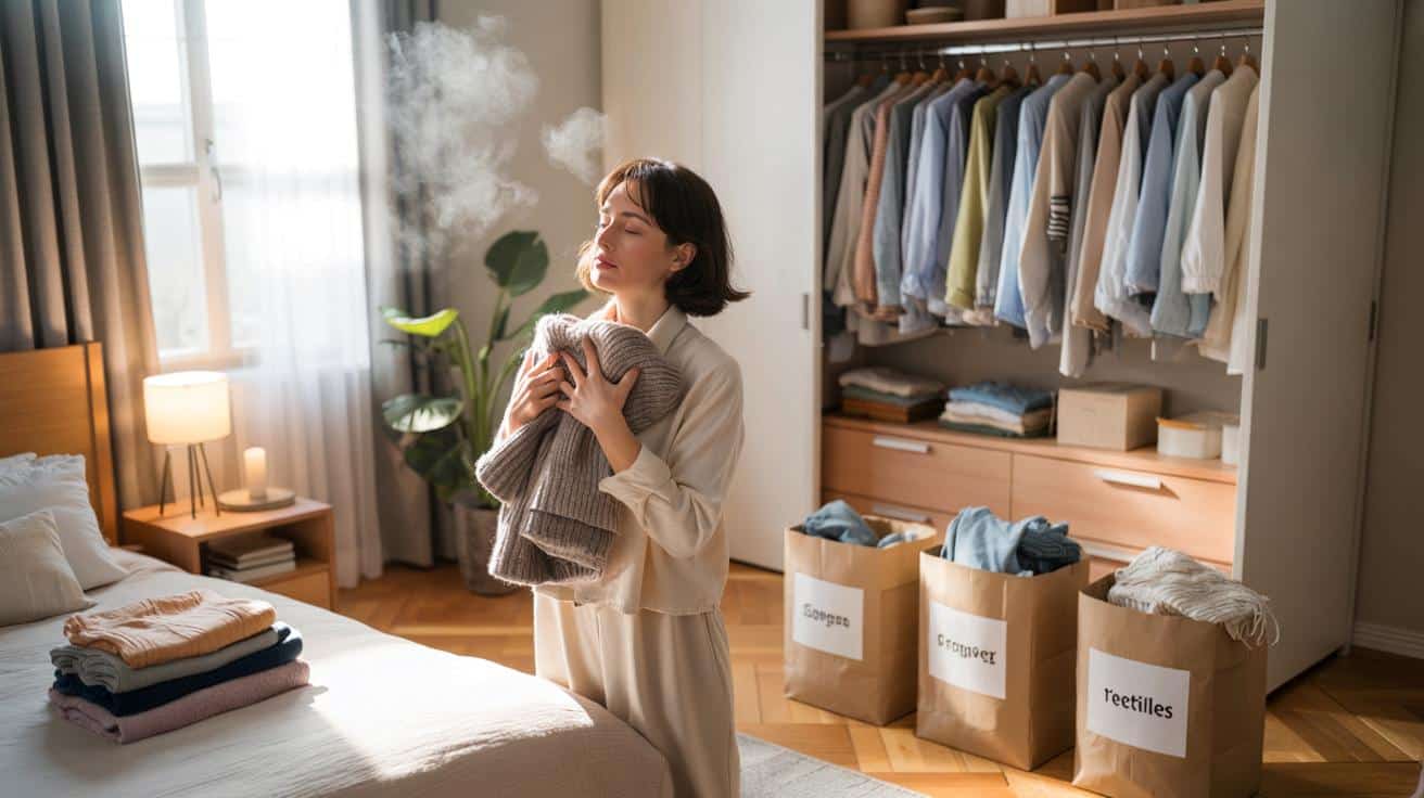 Am Samstagvormittag kippt ein ganzer Schrank auf den Teppich. Baumwolle, Wolle, Synthetik, Farben wie Popcorn – es raschelt, riecht nach Waschmittel und alten Tagen. Ich nehme einen Pullover in die Hand, der mal mein Lieblingsstück war und jetzt kratzt. Noch bevor ich ihn ans Herz halte, zieht eine Szene durch den Kopf: Winter, Straßenbahn, eine Hand, die meine suchte. Das Stück fühlt sich schwer an, nicht warm. Die Luft im Zimmer verändert sich, als ich ihn in die „Geht“-Tasche lege. Ein paar Teile später ist der Boden wieder zu sehen und mein Atem ruhiger. Der Moment ist leise, aber er wirkt. Etwas fällt ab, das ich nicht benennen kann. Und genau da wird es spannend.