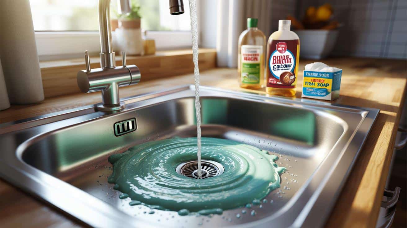 It’s ordinary **Spülmittel** – classic dish soap – used in the right way. Not a polite little dash, but a proper, focused dose. Dish soap is designed to attack fat and oil. It wraps greasy particles, loosens them from surfaces and lets water carry them away. On your plates, it does that in seconds. In your drain, it can do the same, if you give it time and the right conditions.