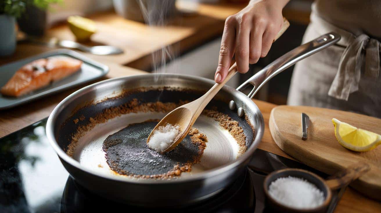 | Sanfte Reinigung mit Salz | Salz mit Wasser erhitzen, als natürliches Scheuermittel nutzen | Rettet Pfannen, ohne Beschichtungen oder Material zu zerstören |