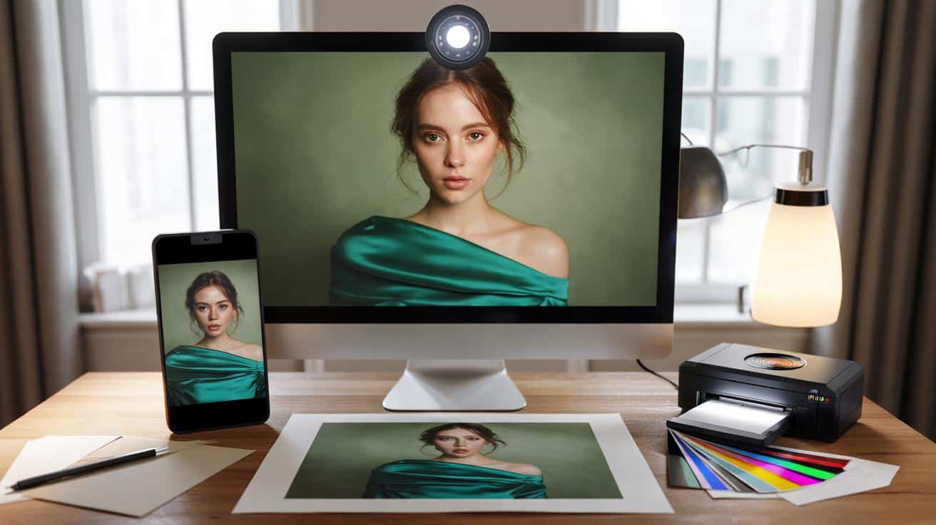 Gestern im Studio war das Grün des Kleides satt, elegant, heute auf dem Handy kippt es ins Neon, als hätte jemand den Frühling überdreht. Ich tippe das Bild an, wechsle die App, dann das Gerät, und merke, dass nicht die Kamera Schuld trägt, sondern die Sprache, in der das Foto unterwegs ist: das Farbprofil. Es ist seltsam, wie sehr ein unsichtbarer Anhang den Ton eines Bildes bestimmt. Und doch entscheidet er über Lob oder Enttäuschung. Das Profil entscheidet.