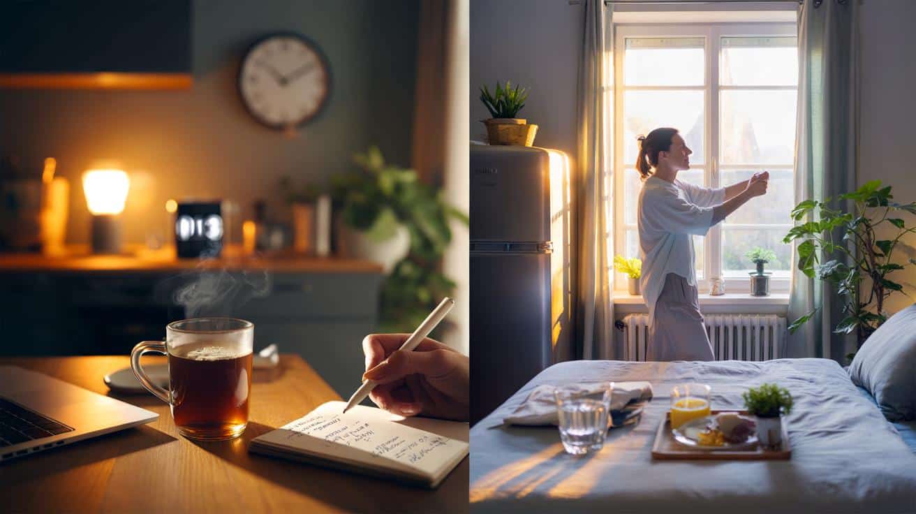 Ich habe es bei Freunden gesehen, die scheinbar mühelos schlafen, und bei Menschen, die seit Jahren kämpfen. Eine Freundin, nennen wir sie Lena, begann mit drei Dingen: Licht dimmen, Bildschirm aus nach 21 Uhr, fünf Minuten Notizblock. Nach zwei Wochen berichtete sie von kürzeren Einschlafzeiten und weniger Aufwachen um drei. Eine Auswertung der National Sleep Foundation beschreibt genau diese Schiene: feste Abläufe korrelieren mit mehr Tiefschlaf und stabileren Morgen. Ich merkte es erst, als der Morgen anders schmeckte.