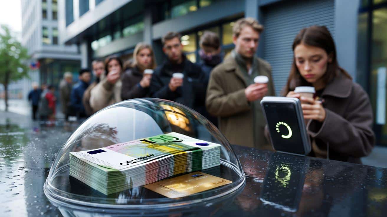 Vor dem Geldautomaten steht eine kleine Schlange, Menschen mit Kaffee in der Hand, müde Blicke. Ich höre zwei Sätze, die hängen bleiben: „Hast du das gelesen? Unsere Bank wackelt.“ Und dann: „Ich hebe lieber alles ab.“