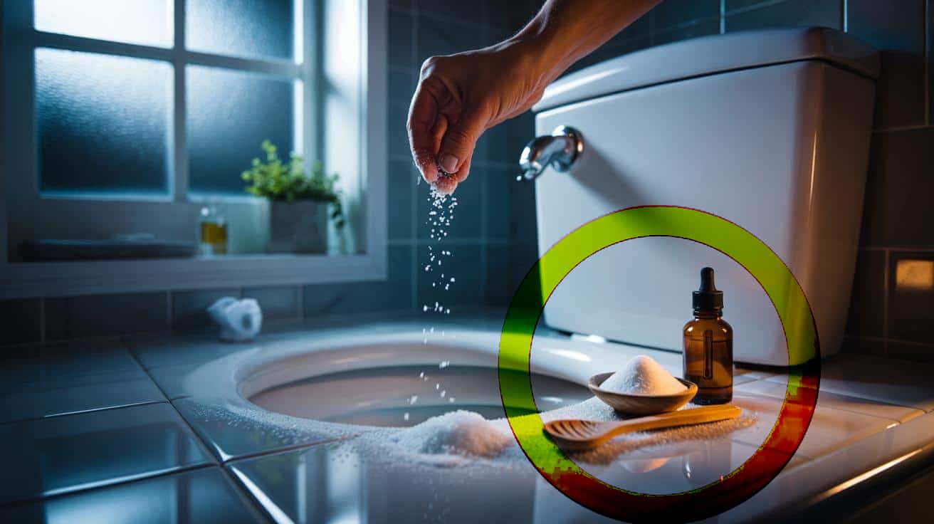 - Zwei Esslöffel grobkörniges Salz in die Toilettenschüssel streuen.