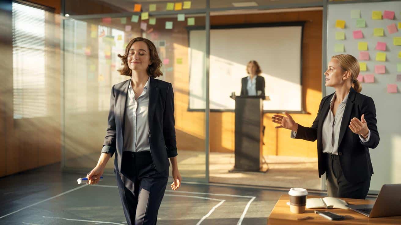 Es ist 8:17 Uhr, der Seminarraum lehnt noch im Halbdunkel. Ein Coach klebt eine Post-it-Straße an die Wand, Kaffee riecht nach „gleich geht’s los“. Eine Teilnehmerin dreht ihren Stift, das Hemd sitzt zu streng, die Stimme ist unsicher. „Ich sehe mich da vorne. Und doch nicht“, sagt sie leise. Der Coach nickt, zeichnet mit Kreide einen Rahmen auf den Boden. „Tritt rein. Das ist deine Szene.“ Minuten später beschreibt sie ihre kommende Präsentation in Farbe: der erste Blickkontakt, der Atem, die erste Folie. Irgendetwas kippt. Ein kleines Lächeln. Und dann dieser Satz, der den Raum still macht: „Ich hab’s schon erlebt.“