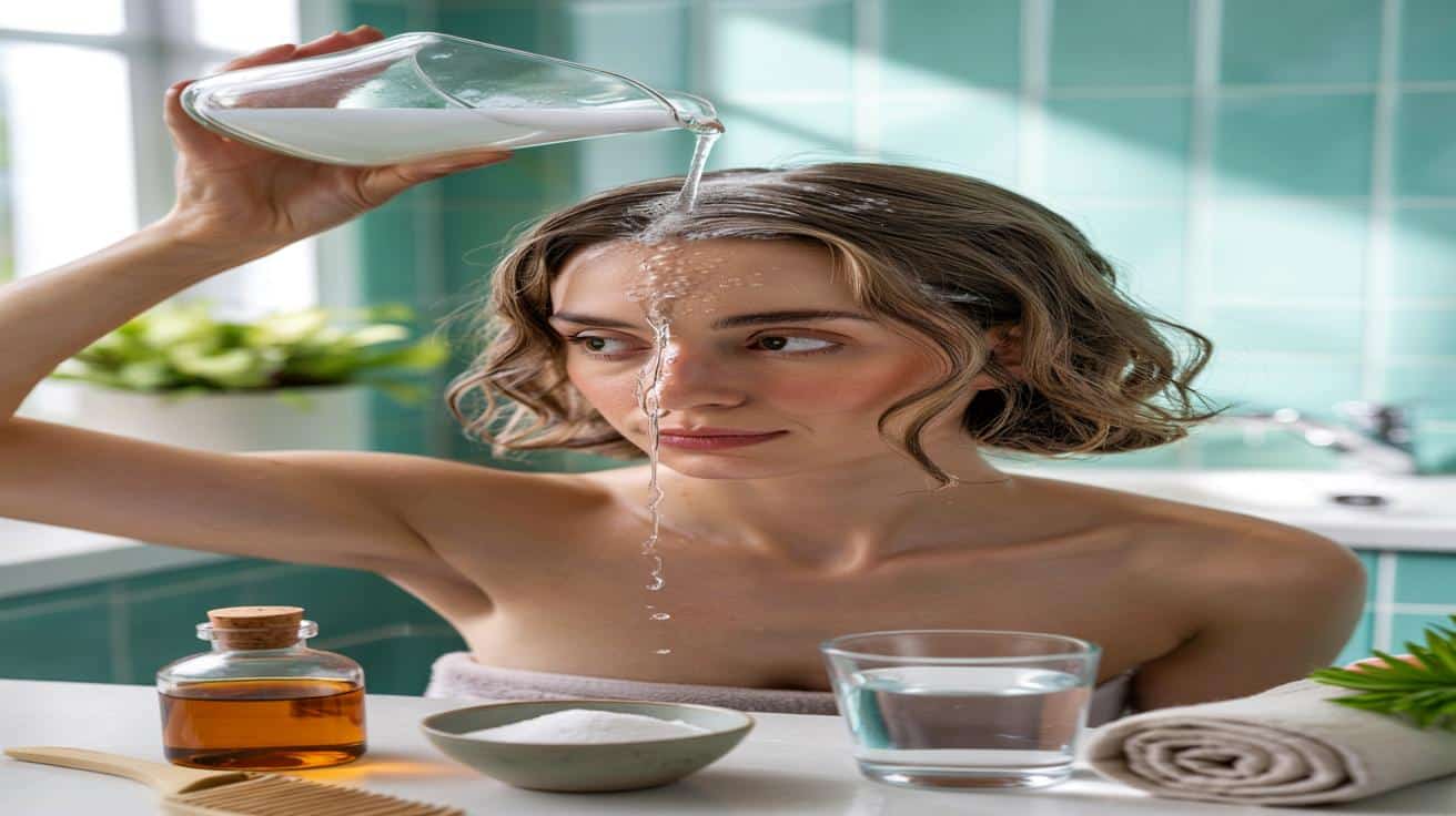 Im Anschluss eine milde saure Rinse anmischen: 1–2 TL Apfelessig in 300 ml kaltem Wasser, über die Längen gießen, kurz wirken lassen, optional mit kühlem Wasser nachspülen. Das bringt den pH-Wert wieder in Balance und schließt die Schuppenschicht, der Glanz kommt zurück. Wer mag, gibt danach einen leichten Conditioner in die Spitzen, damit die Haarenden nicht protestieren.