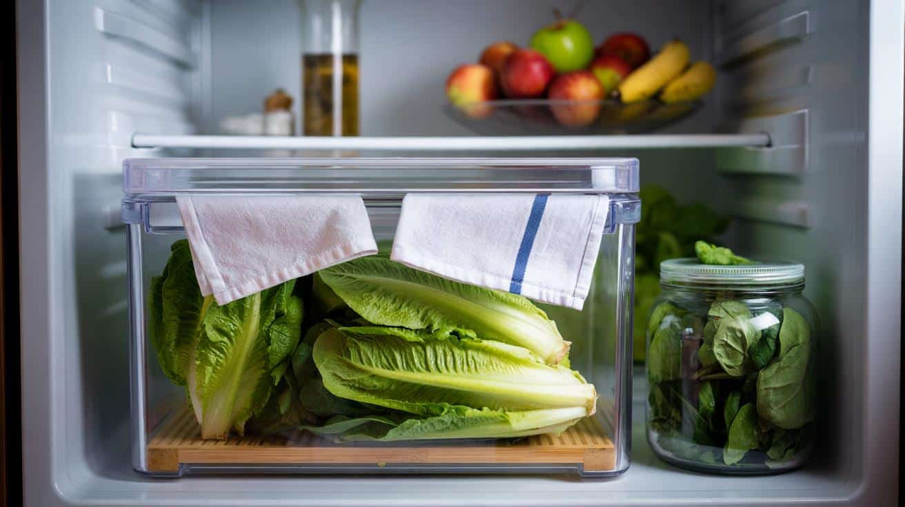 Einmal einrichten, dann läuft’s: Box, Tuch, Gemüsefach – und der Salat bleibt planbar.