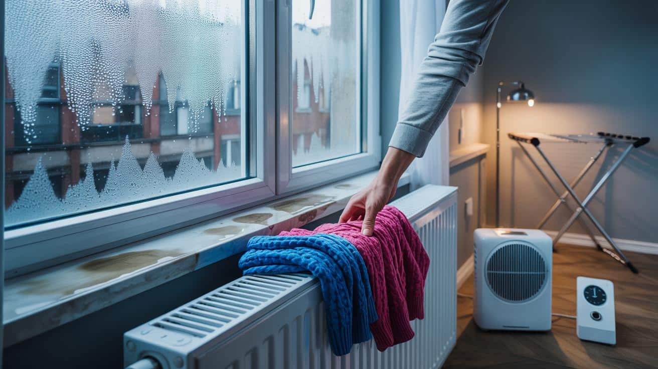 Der kritischste Handgriff: Wäsche direkt auf den Heizkörper legen und die Fenster geschlossen halten, um Wärme zu bewahren. Das beschleunigt die Verdunstung, sperrt die Feuchte aber im Raum ein. Der Heizkörper verliert zudem Leistung, weil die Luftzirkulation blockiert wird.