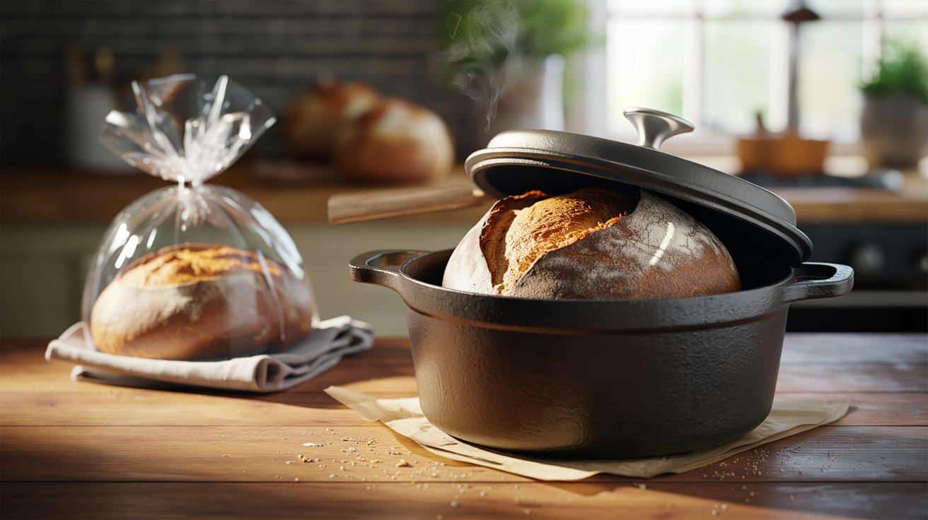 Die Methode ist unprätentiös. Sie nutzt ein Gefäß, das Luft zähmt, ohne zu versiegeln. Ergebnis: Kruste bleibt trocken, Krume bleibt saftig.