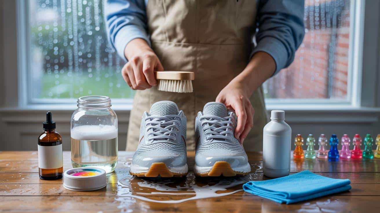 Es ist ein Samstag, das Fenster beschlagen vom Regen, auf dem Küchentisch ein altes Einmachglas. Eine Freundin kippt etwas hinein, rührt, dann schäumt es sanft, als hätte jemand Luft in einen Cappuccino geflüstert. Ihr Paar verstaubter, hellgrauer Sneaker liegt daneben wie zwei müde Fische am Ufer. Mit einer weichen Bürste massiert sie die Mischung in das Mesh, ritzt nicht, drückt nicht, nur kreisende, geduldige Bewegungen. Nach zwei Durchgängen glänzt die Gummisohle wieder, die Kappe wirkt wacher, die Ferse riecht nicht mehr nach Turnhalle, sondern nach sauberer Wäsche. *Ich schwöre, es war wie ein kleiner Zaubertrick.* Kein Drama, kein Chlor, keine Ausreden. Was steckt dahinter?