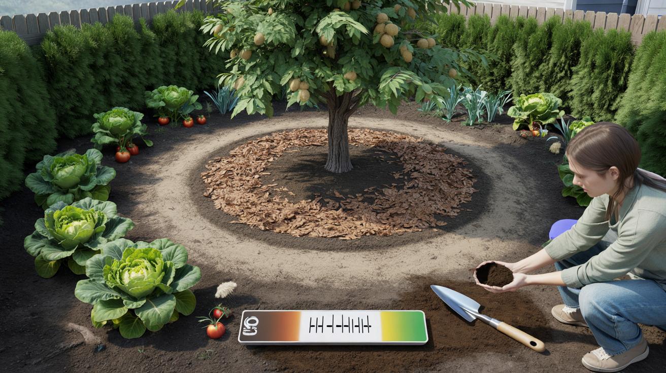 Martina aus Rheinhessen pflanzte eine Thuja-Reihe und – weil es hübsch aussah – eine Schwarznuss als Schattenspender. Zwölf Jahre später misst sie mit einem Bodentest pH 5,2 im Heckenstreifen, der Rest des Gartens liegt bei 6,6. Im Radius von vier Metern mickern die Tomaten, und die Salatreihe kippt fleckig aus.