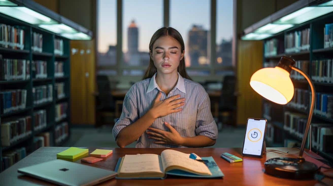 - Vor Prüfungen: 4 Runden Box Breathing, dann eine Minute Pause.