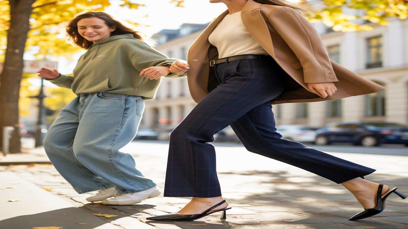 Ich sah, wie zwei Freundinnen ihre Hosenbeine musterten, die eine zupfte genervt am weiten Denimsaum, die andere grinste und drehte sich einmal um die eigene Achse. „Ich kann mit Baggy einfach nichts anfangen“, sagte sie. Dann blieb mein Blick hängen: eine schmale, glatte Silhouette, ab dem Knie ein leichter Kick. Nicht eng, nicht weit. Elegant, aber nicht steif. Der Stoff schwang, als sie die Straße überquerte, und streckte die Beine optisch um gefühlt fünf Zentimeter. Es war kein Zufall. Es war die Hose, die still alles verändert. Die Form hat einen Namen. Und sie kommt im Herbst 2025 groß.