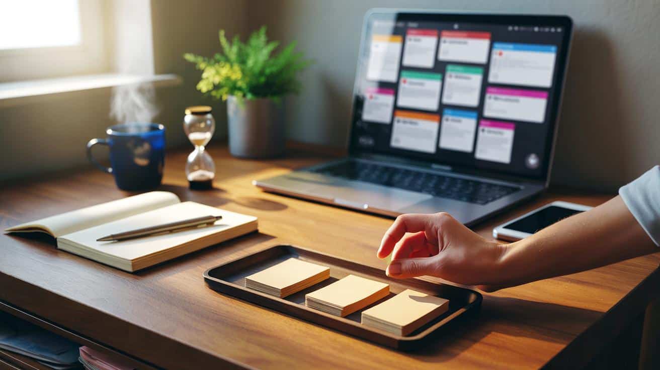 Der einfache Rahmen: ein Tages-Limit. Nimm drei Hauptaufgaben, maximal zwei Mini-Sachen. Schreib sie morgens von Hand auf eine Karte. Leg diese Karte sichtbar neben die Tastatur. Alles, was neu reinkommt, wandert auf eine „Morgen“-Liste. Wenn du eine Hauptaufgabe durchziehst, markiere sie fett. Kleine Geste, großer Hebel. Wer mag, nutzt die Ampelregel: Grün sind Kleinigkeiten, Gelb sind Mini-Projekte, Rot sind tiefe Arbeit. Pro Tag nur eine rote Sache, sonst wird es zäh. Die Grenze ist kein Käfig, sie ist Geländer.