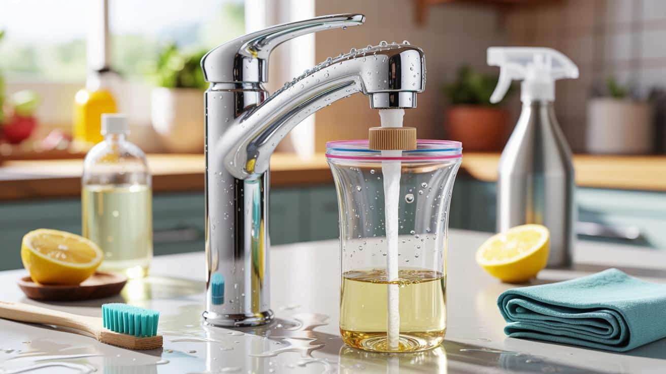 | Tüten-Trick statt Schraubenzieher | Beutel mit Essig/Zitronensäure über den Auslauf hängen, 20–40 Minuten einwirken lassen | Schnell, sauber, kein Auseinanderbauen |