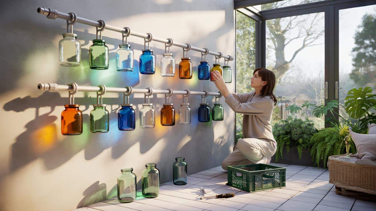Lina hat ein Problem, das viele kennen: kahle Wände, ein schöner Raum, aber kein Gefühl. Pflanzen sind da, ein Teppich liegt, und trotzdem bleibt der Blick nirgendwo hängen. In der Kiste mit den Gläsern liegt plötzlich ein Ansatz, nicht als Plan, sondern als Impuls. Sie hält ein grünes Glas hoch, kippt es leicht gegen die Scheibe, und der Sonnenfleck an der Wand wird weich wie Moos. **In diesem Moment begreift sie: Die Wand kann selbst zur Lichtquelle werden.** Kein Strom, kein Kabel, nur Glas, Schatten und Geduld.