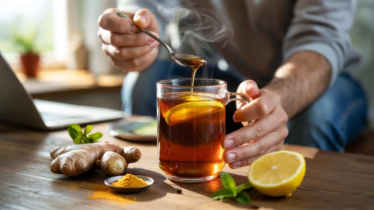 Neben mir gießt ein Kioskbesitzer heißes Wasser über dünne, helle Scheiben – Ingwer, Zitrone, ein Löffel Honig. Der Dampf riecht scharf, fast pfeffrig, wie eine kleine Weckerklingel für den Kreislauf. Ich nippe, und die Wärme wandert vom Rachen in die Hände, in die Füße. *Ein kleiner, täglicher Impuls – mehr nicht.*