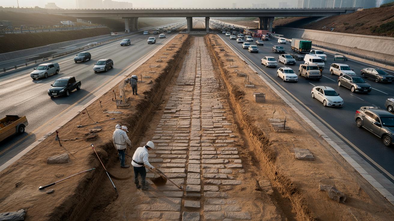 Kein bröseliger Pfad, keine Laune der Natur, sondern etwas, das wie der klar gezogene Strich eines Ingenieurs aussieht. Zentimeter für Zentimeter legen sie eine Fahrbahn frei, die zwei Jahrtausende lang im Verborgenen lag – und trotzdem verblüffend vertraut wirkt. Dort, wo heute Schlaglöcher und Staus unseren Alltag diktieren, haben Menschen schon vor 2.200 Jahren an etwas gebaut, das nach Effizienz, Planung und Weitblick schreit. Diese kaiserliche Straße verläuft so konsequent, dass moderne Vermessungsgeräte nur zustimmend nicken können. Plötzlich fühlt sich unsere „moderne“ Infrastruktur erstaunlich jung an. Und ein bisschen überheblich.