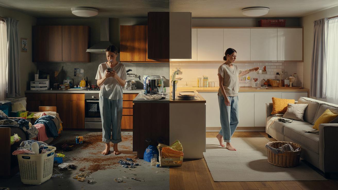 Viele Menschen berichten, dass sich ihre innere Stimme verändert. Statt „Du müsstest alles machen“ heißt es plötzlich häufiger „Ich räume eben schnell das weg“. Der Haushalt wird vom Gegner zum Hintergrundgeräusch. Kein Highlight, kein Drama. Nur etwas, das mitläuft, wie Geschirrspülerbrummen am Abend.
