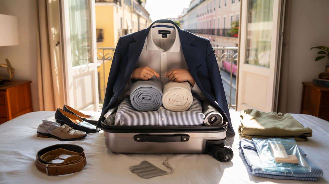Ich habe es bei einer Pendlerin gesehen, die ihren Koffer regelmäßig vorschickt: zwei Tage Bahn, ein Tag im Depot, dann ins Hotel. Früher kam sie mit Knitterfalten an, die man auf Fotos sieht. Mit Bündeln? Ein Blazer, den sie direkt überwarf, als wäre er vom Bügel. Sie stopfte nichts, sie schichtete. Hemden wechselten die Richtung, Kragen nach außen, Ärmel glatt gestrichen. Und das Volumen schrumpfte so, dass noch die Regenjacke hineinpasste. Nicht gequetscht, eher eingebettet.