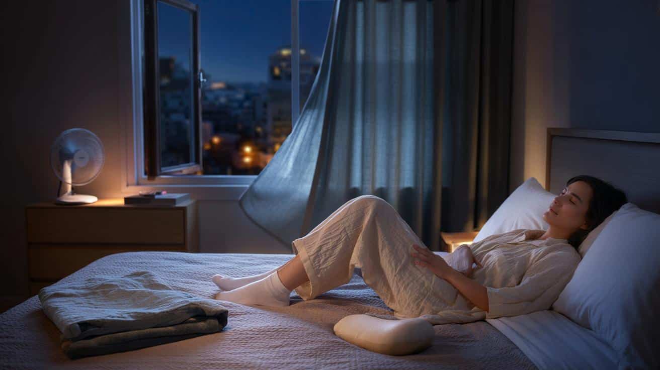 - 60–90 Minuten vorher: lauwarm duschen oder baden, danach dünn anziehen.