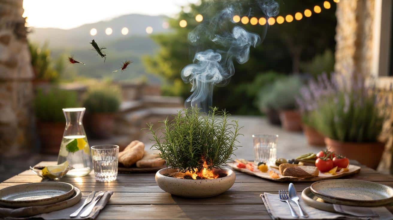 | Rosmarin glimmen lassen | Aromatischer Rauch stört Anlocksignale | Nahe Sitzbereich | Gering | Nachlegen alle 60–90 Min. |