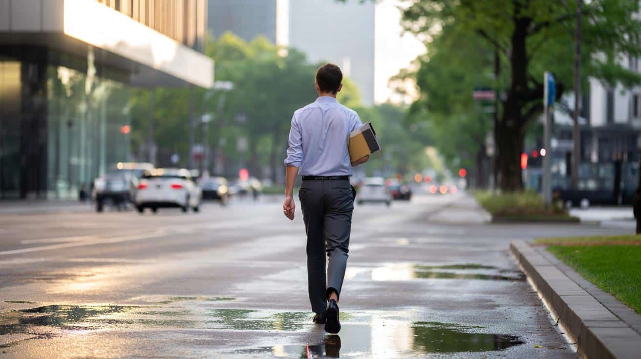 Der Regen vom Morgen hängt noch als feiner Glanz auf den Autoscheiben, als Jana vor dem Büro stehen bleibt. In ihrer Tasche: zwei unterschriftsreife Verträge, die ihre nächsten fünf Jahre bestimmen können. Drinnen wartet der Chef, drinnen warten Zahlen, Präsentationen, Meinungen. Draußen rauscht die Straße, irgendwo ruft eine Amsel.