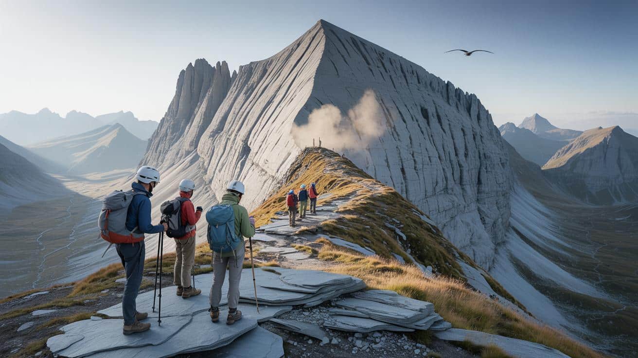 Unterhalb der Gipfelpyramide sortieren Menschen ihre Stöcke, ziehen Riemen fest, schauen hinauf zu dieser hellen Narbe im Fels, die sich wie eine Frage durch den Berg zieht. „Manche wollen einfach nochmal hoch, bevor der große Berg endgültig auseinanderfällt“, sagt ein Mann mit grauem Bart, als würde er eine alte Geschichte erzählen. Der Wind roch nach Stein und kaltem Eisen. Im Tal unten glitzern Dächer. Oben klirrt lose Platte unter den Stiefeln. Ein Reiher kreist wie ein langsamer Gedanke. Dann wird es still, als die ersten in die Flanke eintreten. Und alle schauen zur Risskante.