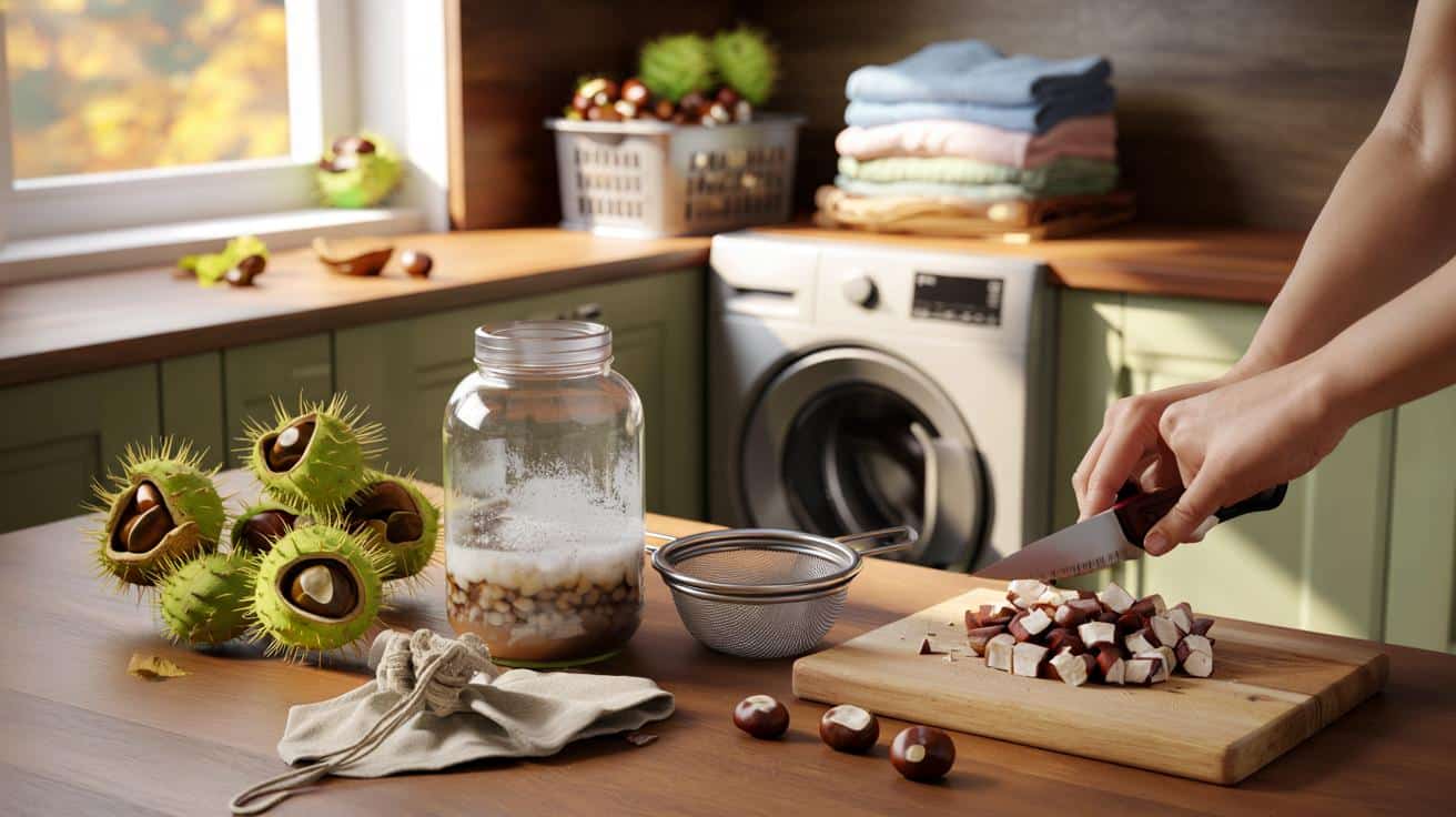 Fehlerquellen? Sie sind normal. Zu grob geschnittene Kastanien geben wenig Saponine ab; dann hilft es, kleiner zu würfeln oder den Sud über Nacht im Kühlschrank ziehen zu lassen. Bräunliche Flecken auf Weißwäsche entstehen meist durch Schalenabrieb oder hartes Wasser – hier hilft es, die braune Schale zu entfernen, ein Wäschesäckchen zu nutzen und einen Schuss klaren Haushaltsessig ins Weichspülerfach zu geben. Seien wir ehrlich: Niemand macht das jeden Tag. Es reicht, sich eine einfache Routine zu bauen, die zur eigenen Wäsche passt.
