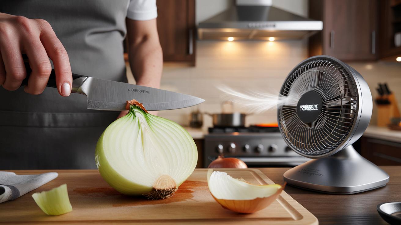 Viele machen zwei kleine Fehler: Sie blasen frontal auf die Augen oder richten den Ventilator zu hoch, dann wirbelt das Gas trotzdem ins Gesicht. Oder sie schneiden die Wurzel zuerst ab und wundern sich, warum die Zwiebel stärker “weint”. Nimm dir zehn Sekunden für das Setup, nicht zehn Minuten für Tränen. Seien wir ehrlich: Das mit Schwimmbrille, angefeuchtetem Brot im Mund und Eiswasserbad macht im Alltag niemand wirklich jeden Tag. Du brauchst keinen Zirkus, nur einen Luftzug und ein gutes Messer.