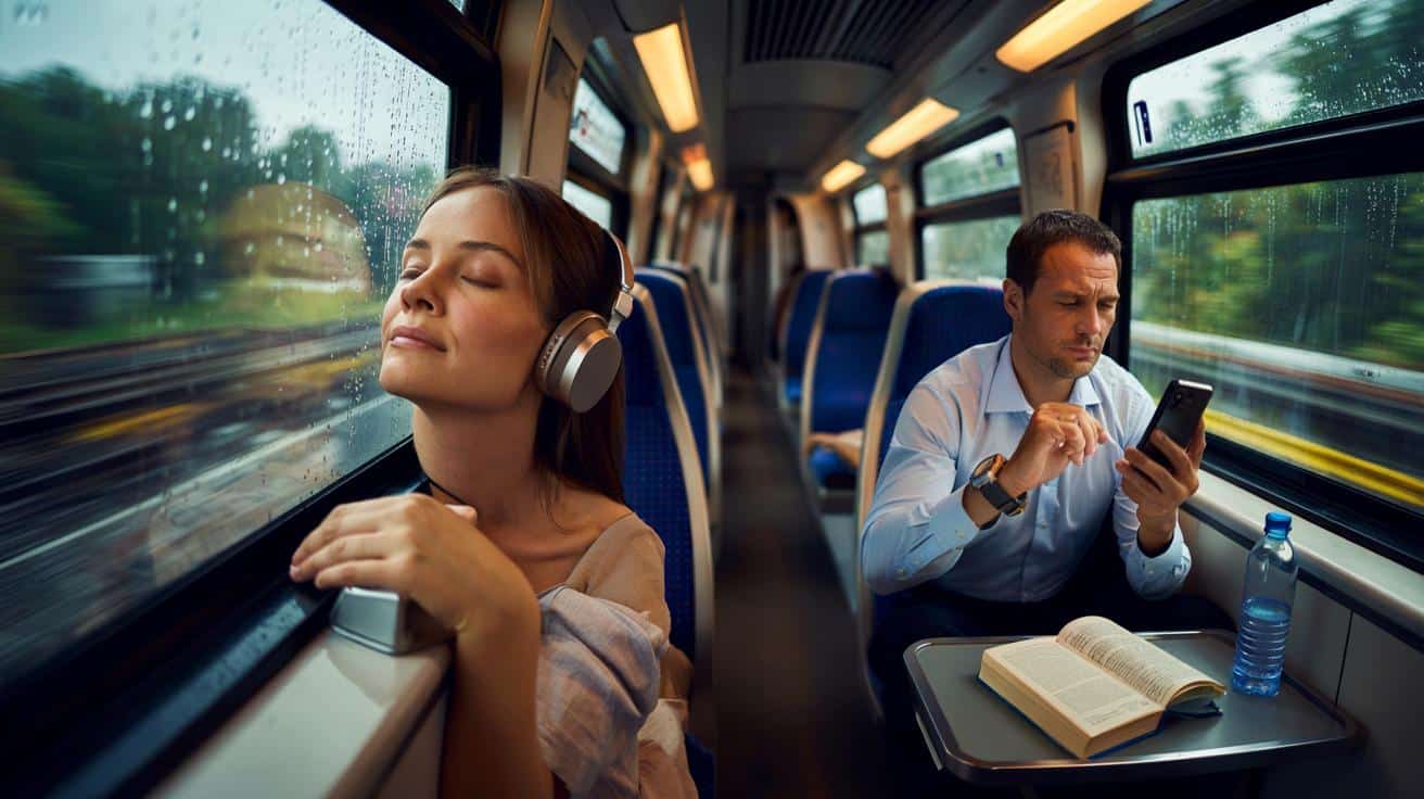 - Warum entspanne ich im Zug besser als zuhause auf dem Sofa?Der Körper reagiert auf monotone, vorhersagbare Bewegung mit Beruhigung, ähnlich wie bei einer Wiege. Der Ortswechsel reduziert zudem Ablenkungen, die dich daheim anspringen.