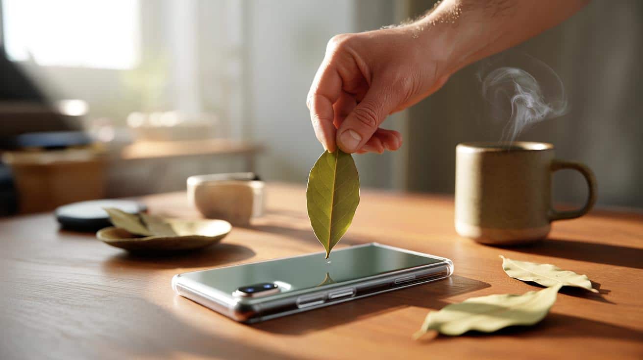Menschen legen ein trockenes Lorbeerblatt in ihre handyhülle. Nicht als Deko. Sondern als Anker für Absichten wie Gelassenheit, Fokus, Erfolg oder Schutz. Der Blick aufs Display erinnert dann jedes Mal: Das ist mir wichtig, dafür stehe ich heute auf.