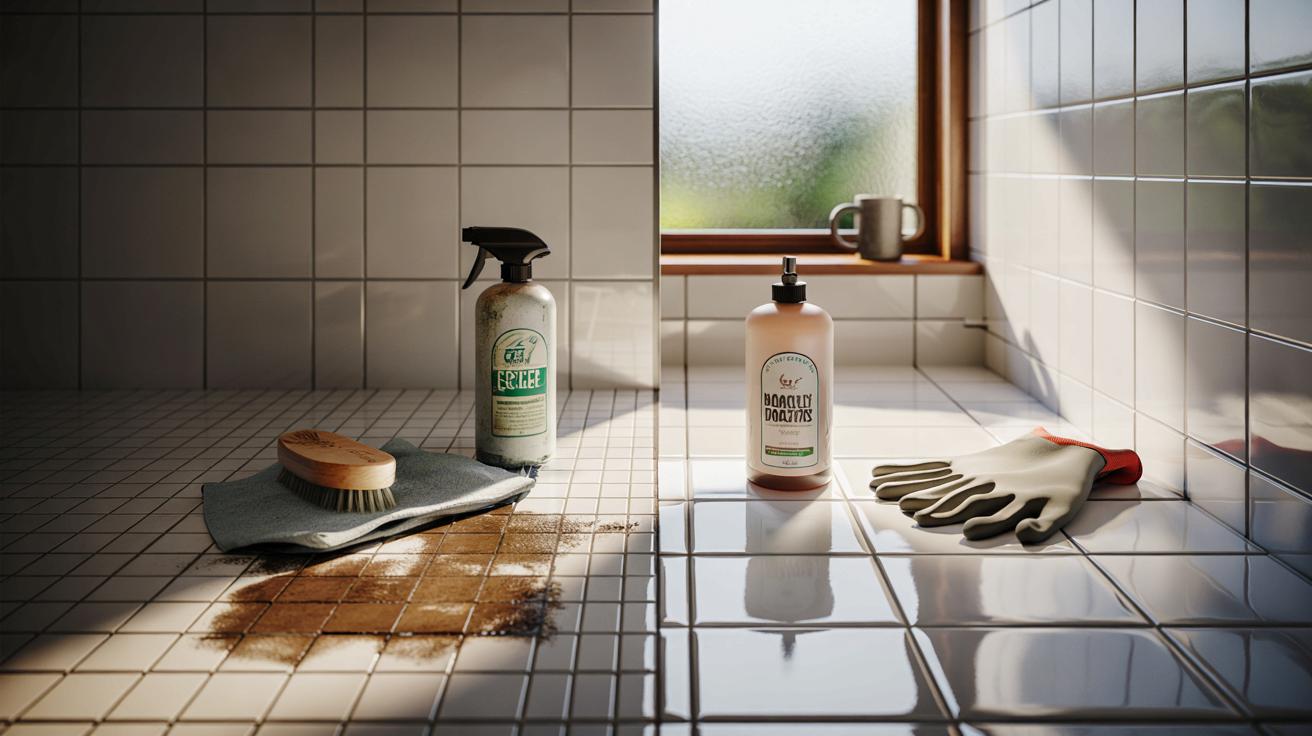 Picture this. A couple in their thirties, new baby, tiny bathroom in an old German apartment. They buy “eco-only” spray from the organic shop, scrub the shower every few days, feel virtuous. After six months, the grout around the lower tiles is brownish, with dark spots creeping up the corners. They blame themselves, scrub harder, use more “green” spray.