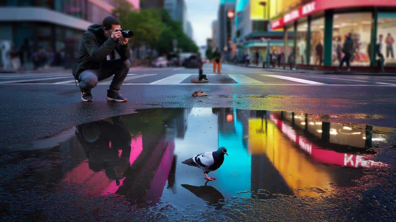 Es war ein grauer Nachmittag, die Stadt roch nach Regen. Vor einem Kiosk lag eine Pfütze, in ihr spiegelten sich Neon, Schuhe, eine neugierige Taube. Die meisten Passanten hoben das Handy auf Brusthöhe, zwei, drei Bilder, weiter. Ich ging in die Hocke, spürte die Kälte am Knie, kippte leicht nach vorne, die Linse knapp über dem Wasser. Die Spiegelung verschob sich, die Farben knallten, der Hintergrund geriet in Unschärfe, und plötzlich war da Tiefe. Im selben Moment merkte ich: Der Boden erzählt mit. Wir alle kennen diesen Moment, in dem ein Foto nicht will wie wir – und ein kleiner Schritt, oder besser: ein tiefer, alles dreht. Man muss es nur einmal spüren. Dann lässt einen der Reiz nicht mehr los.