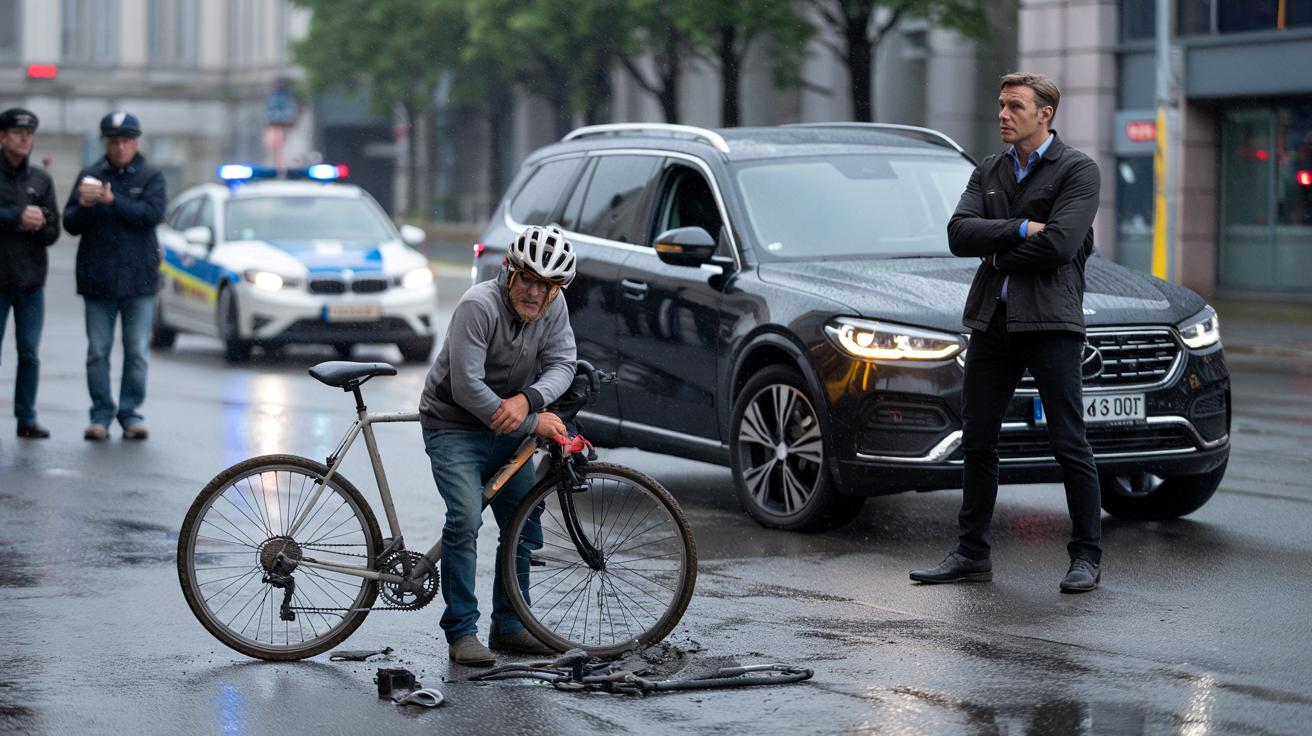 Ein Radfahrer liegt halb quer auf der Straße, sein Vorderrad verbogen wie eine Büroklammer. Vor ihm rollt ein schwarzer SUV aus, dieser glänzende Panzer auf vier Rädern, kaum ein Kratzer in der Stoßstange. Ein kurzer Moment Stille, dann Stimmen, Hupen, Handys, die gezückt werden. Der Fahrer steigt aus, teure Jacke, sonnenbankgebräuntes Gesicht, leicht genervter Blick. Der Radfahrer rappelt sich auf, Knie aufgeschürft, Adrenalin im Blut. Beide schauen auf das Rad, auf den SUV, auf die Ampel. Ein Klassiker der deutschen Verkehrswirklichkeit, der sich später vor Gericht zu einer Geschichte entwickelt, die nur Verlierer kennt. Und einen, der aus der Sache sogar Profit schlägt.