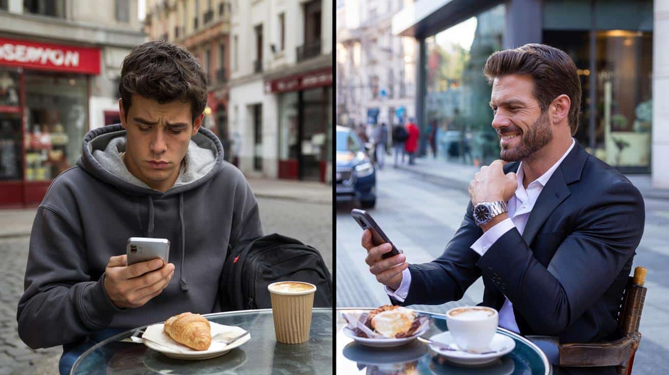 Er schaut auf das Croissant, dann auf den Kaffee, dann auf den Kontostand in seiner Banking-App. Zwei Straßen weiter sitzt ein Mann im Anzug auf der Café-Terrasse, bestellt ohne auf die Preise zu schauen, tippt auf seinem Smartphone zwischen zwei Zoom-Calls. Beide leben in derselben Stadt, im selben System – aber in völlig verschiedenen Welten.
