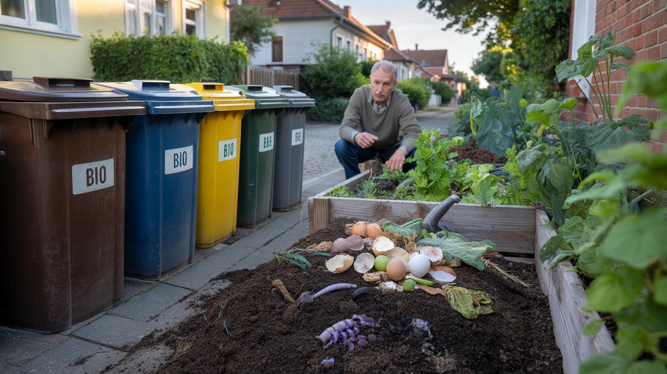Du stellst deinen Bioeimer raus, brauner Deckel, sorgfältig sortiert, halb stolz, halb genervt. Nebenan kippt dein Nachbar seine Küchenabfälle einfach in einen selbst gezimmerten Komposthaufen im Garten, verschneite Eierschalen, Kaffeesatz, Gemüsereste. Er nickt dir nur zu und sagt: „Bio ist bei mir echt bio.“